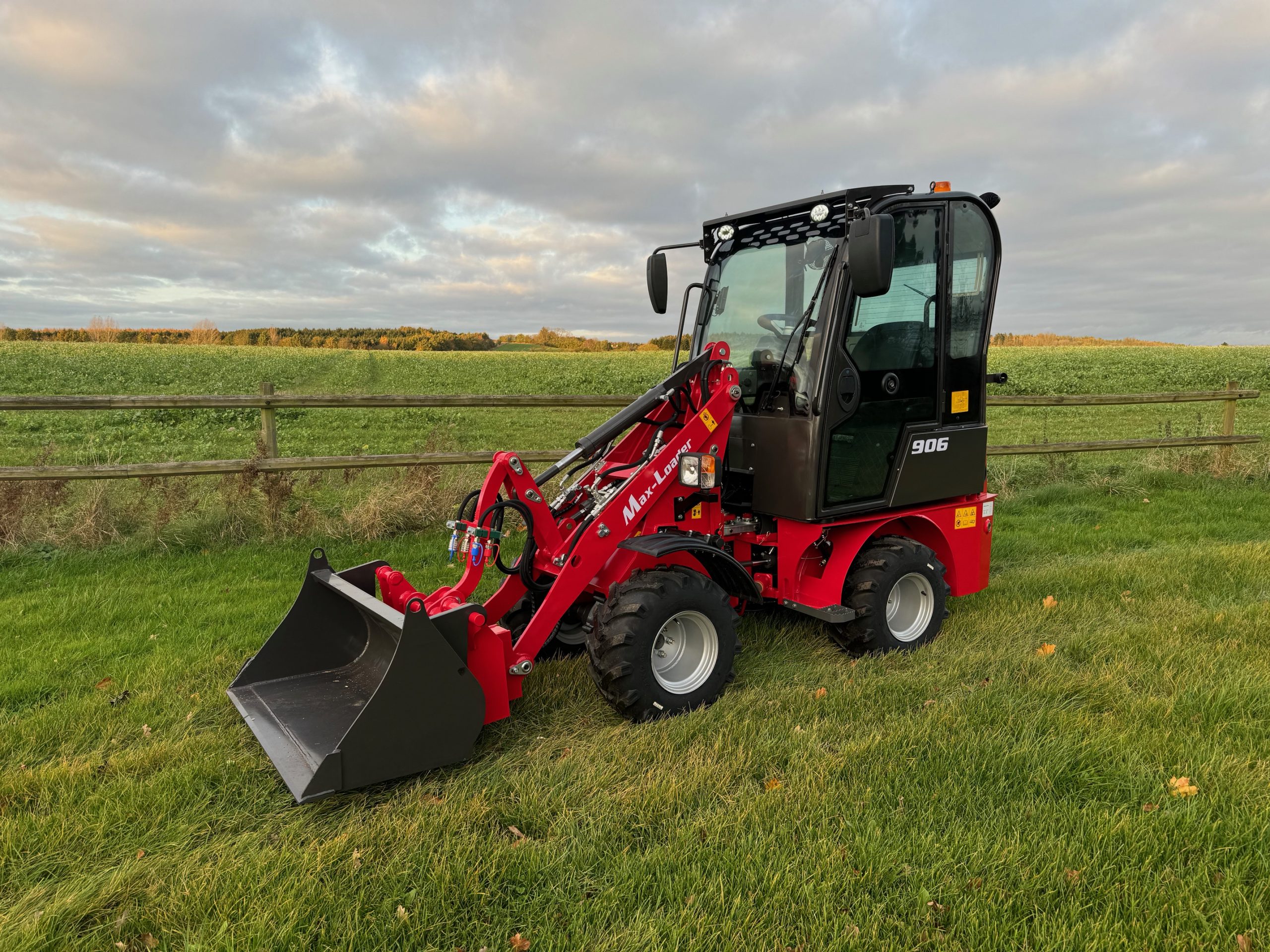 Max Loader 906 en en stærk 4wd maskine der er nem at køre, kørselsretning skiftes let elektrisk. Det lave tyngdepunkt og brede dæk gør maskinen meget stabil, og sikker at køre for selv den uerfarne bruger. Transmissionen er hydrostatisk, 1 gear frem og 1 gear bak. udstyret med LED arbejdslys for og bag. 2x dobbelt virkende hyd udtag. Eurobeslag for redskab, kugle til trailer og ekstra kontravægt.